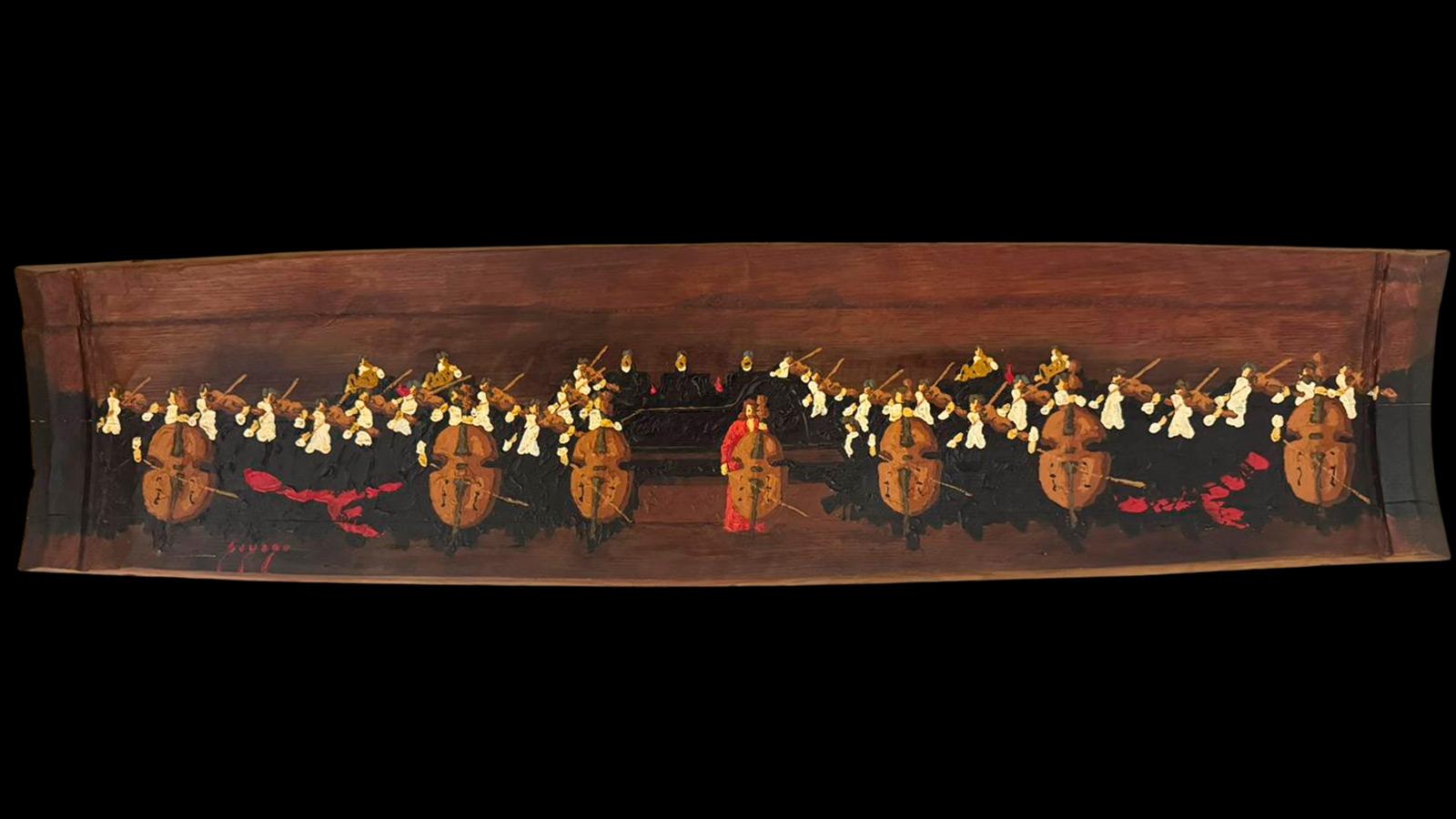 Acrílico y óleo sobre duelas de barricas de roble francés